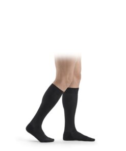 Mediven® for Men is a below-knee stocking with an attractive ribbed design that provides effective support for him and her, whatever the activity is. Mediven® for men makes it easy to keep on the move and feel comfortable, even on particularly active days. This is guaranteed by the interplay of the high-tech fibres that transport moisture to the outer surface of the stocking. It ensures comfort; has a soft band top; fresh everyday and machine washable.