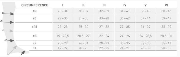 Compression Classes: Ccl 2 (23-32 mmHg) and Ccl 3 (34-46 mmHg)