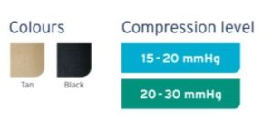 - Compression level: 15-20 mmHg and 20-30 mmHg