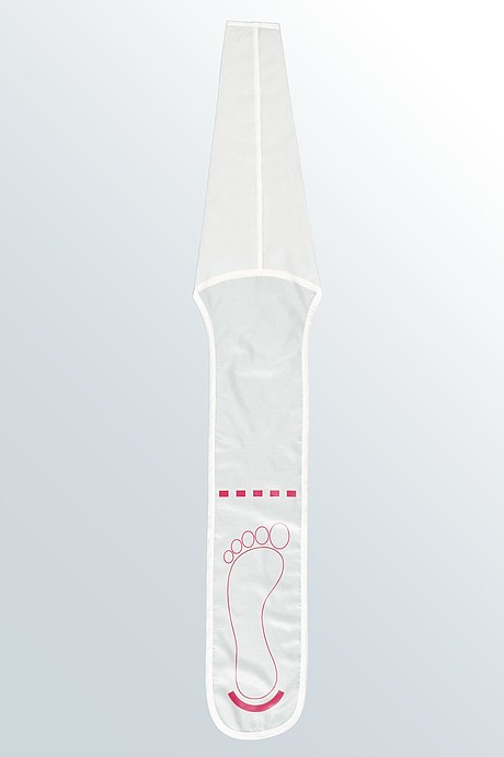 medi 2in1 is a donning and a doffing aid in one: it facilitates an effortless donning and doffing of compression garments. The slider sock is suitable for all compression stockings with open or closed toe. Thanks to the hard-wearing and foldable material, the donning aid medi 2in1 saves space, for example, on journeys.