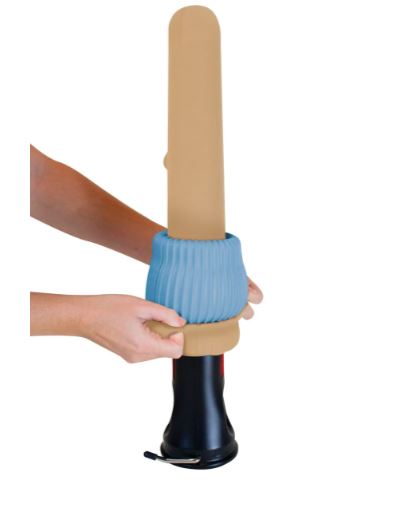 The DOFF N‘ DONNER CONE makes it easier to roll a compression stocking onto and off of the DOFF N‘ DONNER ROLLY for easier application on the leg.