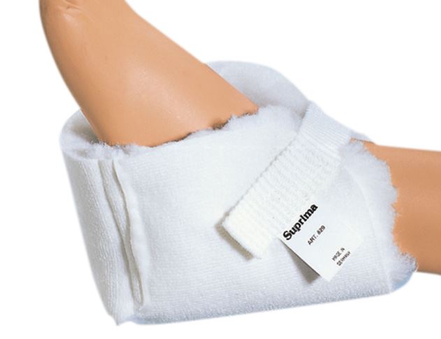 This heel protector by Suprima is specially designed for bed-bound patients, where cold feet and pressure sensitivity in the heel area are common concerns. It features an elasticated Velcro fastening that securely encloses and protects the heel while allowing for easy adjustment to achieve a personalized fit. With its anatomical shape, the protector ensures a high level of comfort for extended wear. It also provides warmth and effective climate control around the heel, helping to maintain skin integrity and overall comfort.