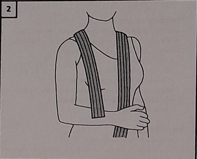 - Affix the other end of the hook Y-tab to the strap / sling to complete the loop and support the arm in position