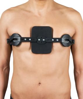 This is a medical chest brace used to treat Pectus Carinatum where the breastbone (sternum) protrudes outward, also known as “pigeon chest.” This brace is a non-surgical treatment that applies pressure to the chest to achieve the right shape over time