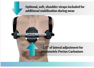 - 2.5 in of lateral adjustment for asymmetric Pectus Carinatum