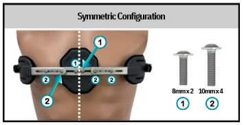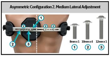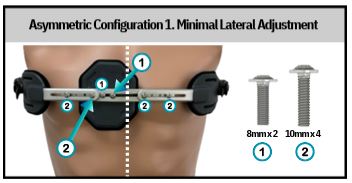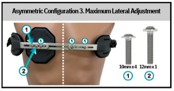 The Pectus Pro brace is supplied in a symmetric configuration with the Front and Back panels adjusted at the centre. For patients with an asymmetric presentation, with one side of the chest pushing out further than the other, the Front panel can be adjusted laterally by following the below incremental configurations: