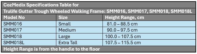 Gutter Wheeled Trough Walking Frame by TRULIFE – SMM016, SMM017, SMM018 & SMM018L