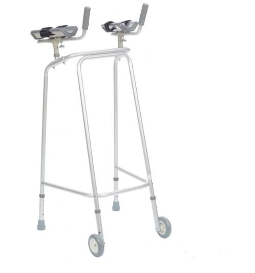 This Compact Gutter Trough Aluminium Frame is designed for both comfort and practicality. It features robust steel troughs lined with ultra-smooth PU arm pads that enhance user comfort while helping to reduce the risk of pressure sores and support better infection control. The frame is fully adjustable, allowing for customisation of height, handle length, and handle angle to suit individual needs. With its optimised width, it is ideal for use in both hospital and home environments.