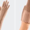 The medi lymph pads leg, which are made of synthetic latex (free from CFC, PCP, nitrosamines, azo dyes and fillers), are particularly thin and do not attract attention under the compression stocking. They are available in the variants: finely napped (small dots), coarsely napped (large dots) and ribbed (line). The breathable material of the pads is kind to the skin. The pads can increase pressure on the areas of tissue affected by oedema or fibrosis. This creates a gentle massage effect to support the treatment of lymphoedema of the leg.