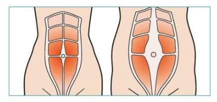 Diastasis is the separation of left and right parts of the rectus abdominus muscle by more than 2 cm. These two parts widen, moving away from the median line (or linea alba) of connective tissue, devoid of nerves and blood, which develops under the sternum and down to the pelvic bone. The main cause of this muscle separation is pregnancy or it can also develop in elderly and obese people.