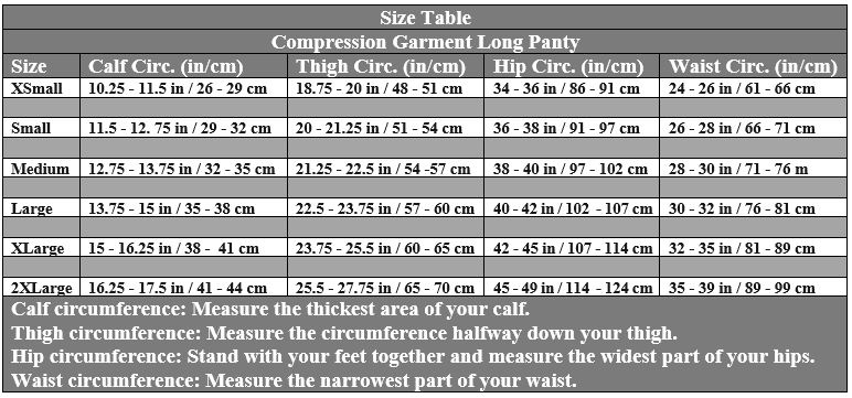 - Long Bermuda panty is 3/4 leg length to support lymphatic drainage