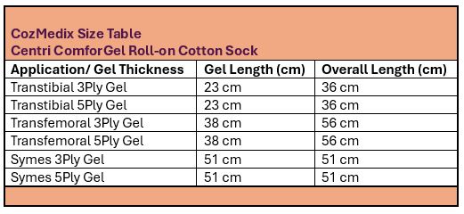 The ComforGel sock comes in three sizes and two thicknesses. They consist of a soft and stretchable cotton inner and outer fabric, sandwiching a soft polymer gel. The emphasis on the softness of both the gel and the fabric, as well as the ease with which the socks can be stretched when donning, results in a high level of comfort and durability when using these products. This makes them ideal for patients who have sensitive or bony residual limbs, as well as those who are more active.